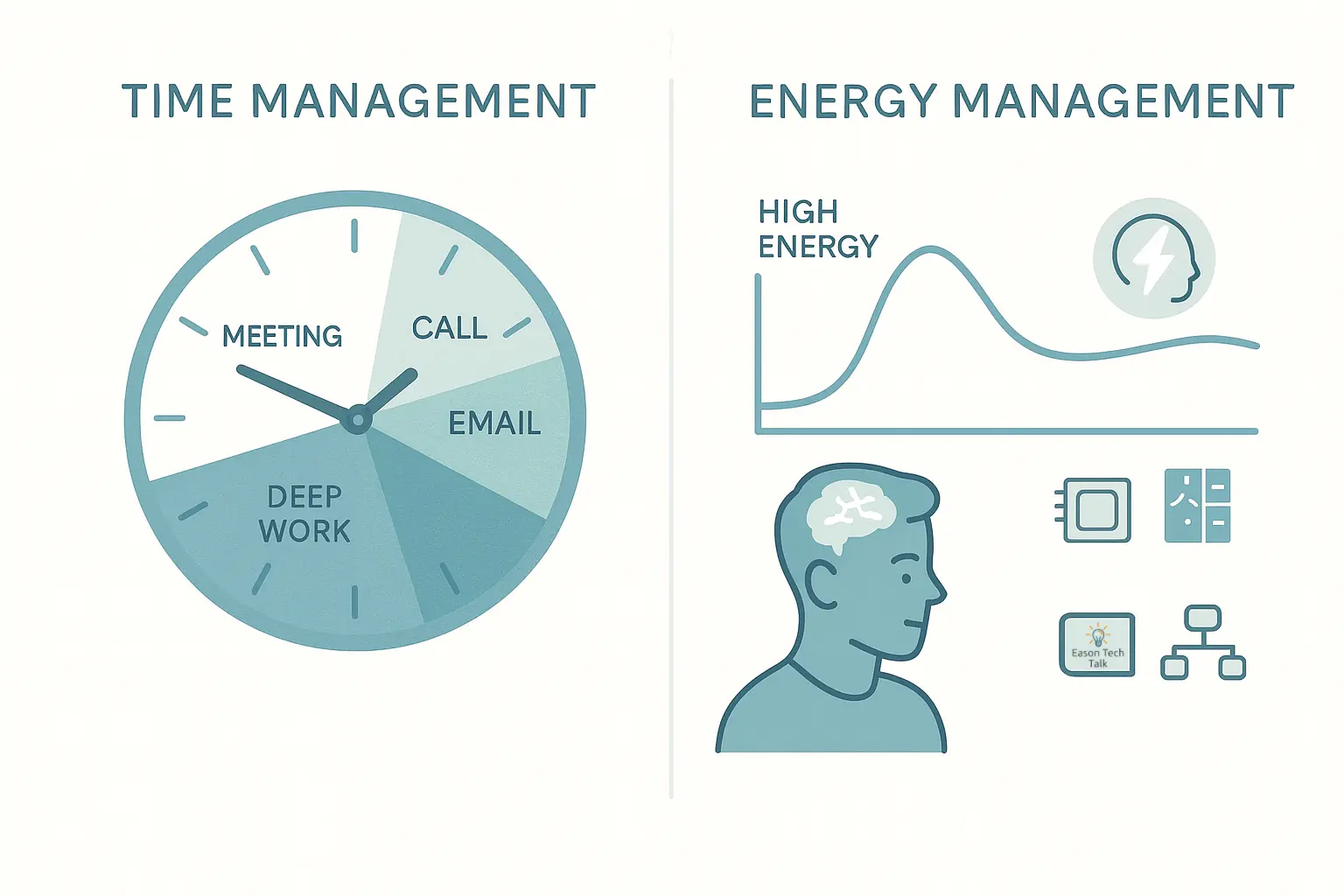 Traditional time management assumes we have consistent energy every day. That’s not reality. Our state fluctuates with sleep quality, physical fatigue, and psychological stress. Sometimes we’re energized and clear-headed; other times we’re exhausted and unable to concentrate.