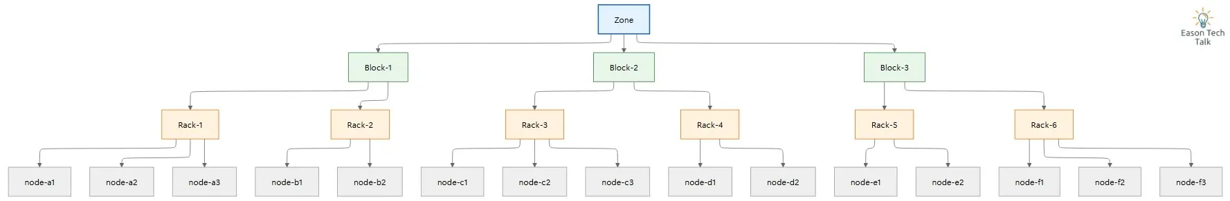 cloud.provider.com/topology-block: a data center blockcloud.provider.com/topology-rack: a rackkubernetes.io/hostname: an individual host at the lowest level